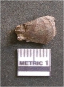 | Description / विवरण | The chert piece is dark in color, with a prominent bulb of percussion and sharp flaked edges. The piece is a part of lithic debitage or raw material for lithic knapping. The piece shows clear ripple marks and bulb of percussion. |