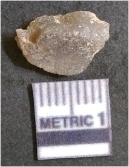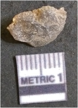 | Description / विवरण | It is chalcedony flake, translucent in appearance. The piece shows sharp pointed ends and flake scars on the surface as a result of flaking. The piece shows a bulb of percussion. |