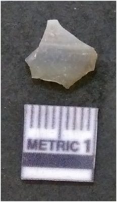 | Description / विवरण | It is chalcedony flake, translucent in appearance. The piece shows sharp pointed ends and flake scars on the surface as a result of flaking. The piece shows a bulb of percussion. |