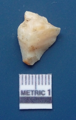 | Description / विवरण | It is chalcedony flake, translucent in appearance. The piece shows sharp pointed ends and flake scars on the surface as a result of flaking. The piece shows a bulb of percussion. |