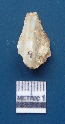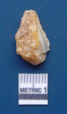 | Description / विवरण | It is chalcedony flake, translucent in appearance. The piece shows sharp pointed ends and flake scars on the surface as a result of flaking. The piece shows a bulb of percussion. |