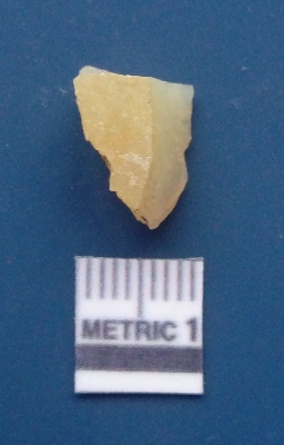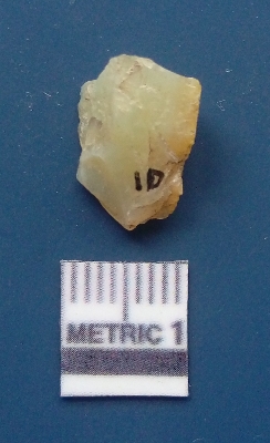 | Description / विवरण | It is chalcedony flake, translucent in appearance. The piece shows sharp pointed ends and flake scars on the surface as a result of flaking. The piece shows a bulb of percussion. |