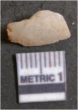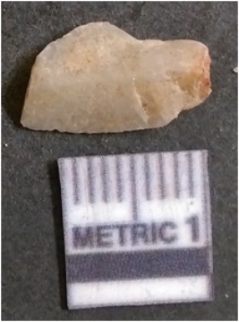 | Description / विवरण | It is chalcedony flake, translucent in appearance. The piece shows sharp pointed ends and flake scars on the surface as a result of flaking. The piece shows a bulb of percussion. |