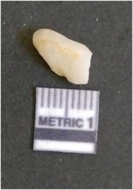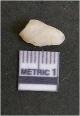 | Description / विवरण | The quartz flake has sharp flaked edges and pointed ends as a result of flaking. The piece is semi-transparent in nature with irregular fracture pattern. The piece is roughly triangular in shape and has a prominent bulb of percussion. |