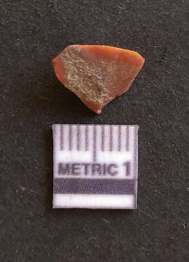 | Description / विवरण | The chert piece is dark in color, with a prominent bulb of percussion and sharp flaked edges. The piece is a part of lithic debitage or raw material for lithic knapping. |