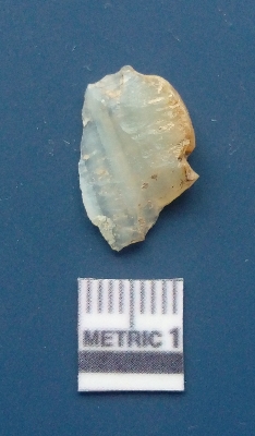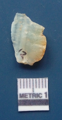 | Description / विवरण | It is chalcedony flake, translucent in appearance. The piece shows sharp pointed ends and flake scars on the surface as a result of flaking. The piece shows a bulb of percussion. |