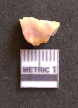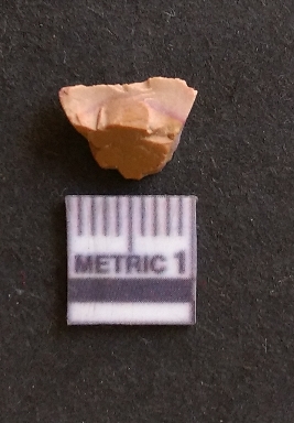 | Description / विवरण | The chert piece is dark in color, with a prominent bulb of percussion and sharp flaked edges. The piece is a part of lithic debitage or raw material for lithic knapping. |