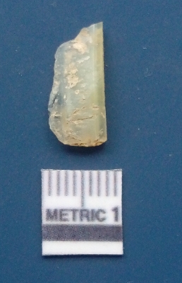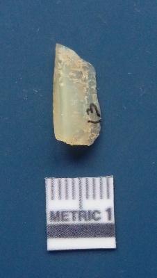 | Description / विवरण | It is chalcedony flake, translucent in appearance. The piece shows sharp pointed ends and flake scars on the surface as a result of flaking. The piece shows a bulb of percussion. |
