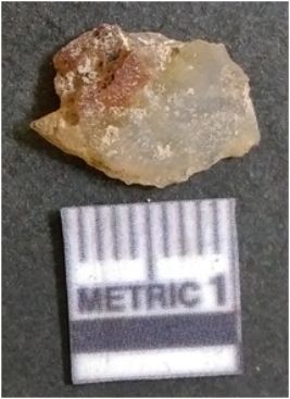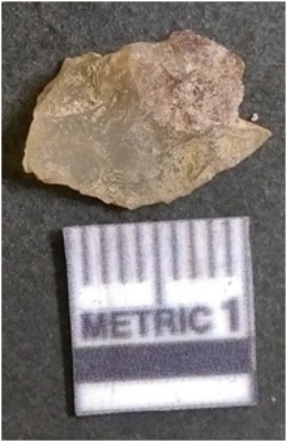 | Description / विवरण | It is chalcedony flake, translucent in appearance. The piece shows sharp pointed ends and flake scars on the surface as a result of flaking. The piece shows a bulb of percussion. |