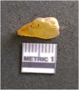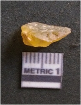 | Description / विवरण | It is chalcedony flake, translucent in appearance. The piece shows sharp pointed ends and flake scars on the surface as a result of flaking. The piece shows a bulb of percussion. |
