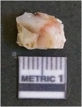 | Description / विवरण | The quartz flake has sharp flaked edges and pointed ends as a result of flaking. The piece is semi-transparent in nature with irregular fracture pattern. The piece is roughly triangular in shape and has a prominent bulb of percussion. |