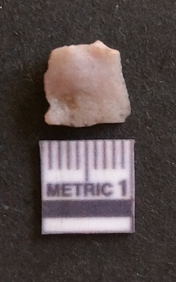 | Description / विवरण | The chert piece is dark in color, with a prominent bulb of percussion and sharp flaked edges. The piece is a part of lithic debitage or raw material for lithic knapping. |
