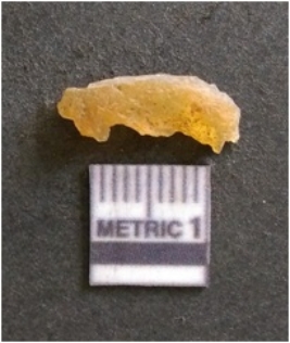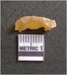 | Description / विवरण | It is chalcedony flake, translucent in appearance. The piece shows sharp pointed ends and flake scars on the surface as a result of flaking. The piece shows a bulb of percussion. |