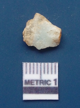 | Description / विवरण | It is chalcedony flake, translucent in appearance. The piece shows sharp pointed ends and flake scars on the surface as a result of flaking. The piece shows a bulb of percussion. |