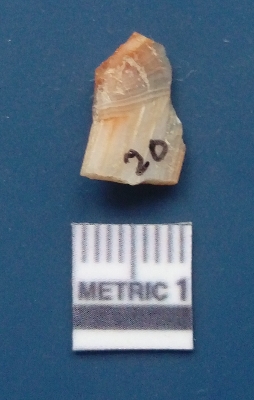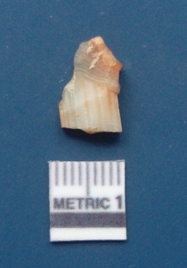 | Description / विवरण | It is chalcedony flake, translucent in appearance. The piece shows sharp pointed ends and flake scars on the surface as a result of flaking. The piece shows a bulb of percussion. |