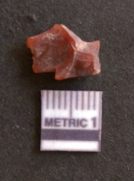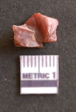| Description / विवरण | The chert piece is dark in color, with a prominent bulb of percussion and sharp flaked edges. The piece is a part of lithic debitage or raw material for lithic knapping. |