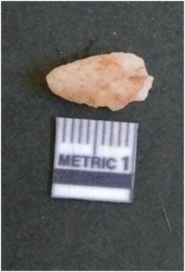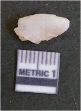 | Description / विवरण | The quartz flake has sharp flaked edges and pointed ends as a result of flaking. The piece is semi-transparent in nature with irregular fracture pattern. The piece is roughly triangular in shape and has a prominent bulb of percussion. |