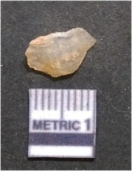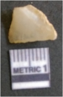 | Description / विवरण | It is chalcedony flake, translucent in appearance. The piece shows sharp pointed ends and flake scars on the surface as a result of flaking. The piece shows a bulb of percussion. |