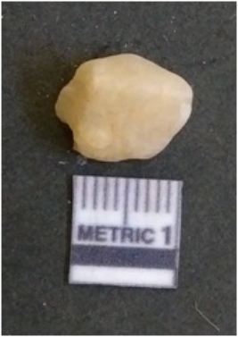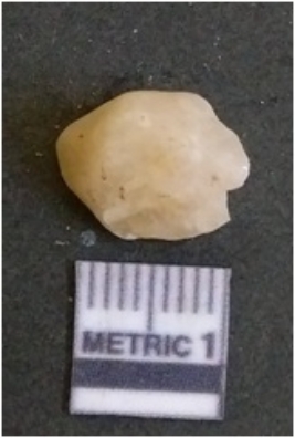 | Description / विवरण | The quartz flake has sharp flaked edges and pointed ends as a result of flaking. The piece is semi-transparent in nature with irregular fracture pattern. The piece is roughly triangular in shape and has a prominent bulb of percussion. |