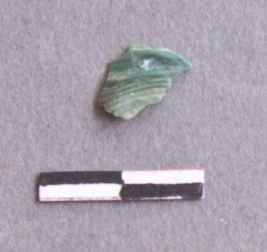 | Description / विवरण | It is green chert fragment. It has sharp edges and pointed ends. Flake scars are visible on the surface. |