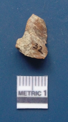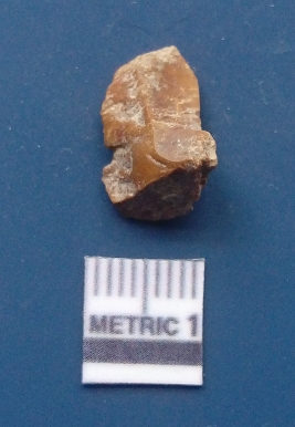 | Description / विवरण | The chert piece is dark in color, with a prominent bulb of percussion and sharp flaked edges. The piece is a part of lithic debitage or raw material for lithic knapping. The piece shows clear ripple marks and bulb of percussion. |