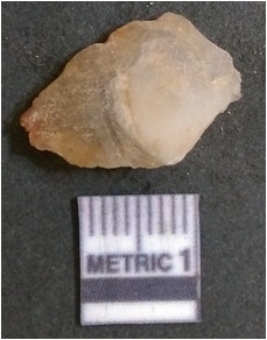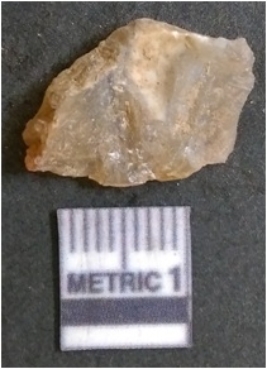 | Description / विवरण | It is chalcedony flake, translucent in appearance. The piece shows sharp pointed ends and flake scars on the surface as a result of flaking. The piece shows a bulb of percussion. |