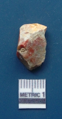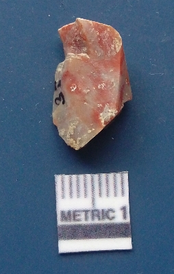 | Description / विवरण | The chert piece is dark in color, with a prominent bulb of percussion and sharp flaked edges. The piece is a part of lithic debitage or raw material for lithic knapping. The piece shows clear ripple marks and bulb of percussion. |