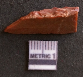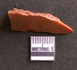 | Description / विवरण | The chert piece is dark in color, with a prominent bulb of percussion and sharp flaked edges. The piece is a part of lithic debitage or raw material for lithic knapping. |