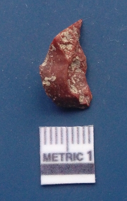 | Description / विवरण | The chert piece is dark in color, with a prominent bulb of percussion and sharp flaked edges. The piece is a part of lithic debitage or raw material for lithic knapping. The piece shows clear ripple marks and bulb of percussion. |