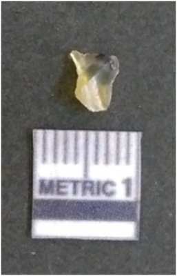 | Description / विवरण | It is chalcedony flake, translucent in appearance. The piece shows sharp pointed ends and flake scars on the surface as a result of flaking. The piece shows a bulb of percussion. |