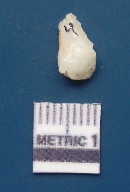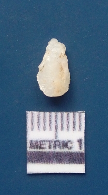 | Description / विवरण | The quartz flake has sharp flaked edges and pointed ends as a result of flaking. The piece is semi-transparent in nature with irregular fracture pattern. The piece is roughly triangular in shape and has a prominent bulb of percussion. |