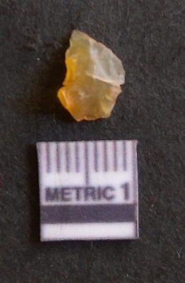 | Description / विवरण | The chalcedony flake is pale yellow in color. Translucent in appurtenance. The piece is shows sharp pointed ends and flake scars on the surface. As a result of flaking. |