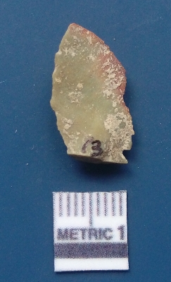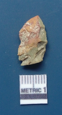 | Description / विवरण | The chert piece is dark in color, with a prominent bulb of percussion and sharp flaked edges. The piece is a part of lithic debitage or raw material for lithic knapping. The piece shows clear ripple marks and bulb of percussion. |