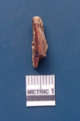 | Description / विवरण | The chert piece is dark in color, with a prominent bulb of percussion and sharp flaked edges. The piece is a part of lithic debitage or raw material for lithic knapping. The piece shows clear ripple marks and bulb of percussion. |