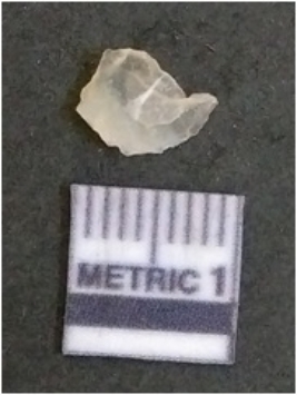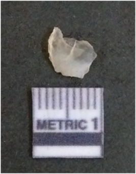 | Description / विवरण | It is chalcedony flake, translucent in appearance. The piece shows sharp pointed ends and flake scars on the surface as a result of flaking. The piece shows a bulb of percussion. |