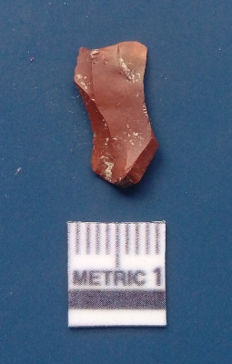 | Description / विवरण | The chert piece is dark in color, with a prominent bulb of percussion and sharp flaked edges. The piece is a part of lithic debitage or raw material for lithic knapping. The piece shows clear ripple marks and bulb of percussion. |
