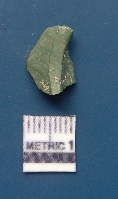 | Description / विवरण | The chert piece is dark in color, with a prominent bulb of percussion and sharp flaked edges. The piece is a part of lithic debitage or raw material for lithic knapping. The piece shows clear ripple marks and bulb of percussion. |