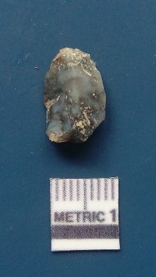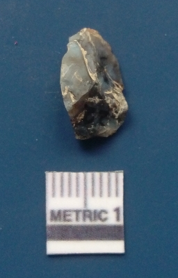 | Description / विवरण | The chert piece is dark in color, with a prominent bulb of percussion and sharp flaked edges. The piece is a part of lithic debitage or raw material for lithic knapping. The piece shows clear ripple marks and bulb of percussion. |