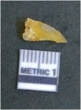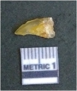 | Description / विवरण | It is chalcedony flake, translucent in appearance. The piece shows sharp pointed ends and flake scars on the surface as a result of flaking. The piece shows a bulb of percussion. |