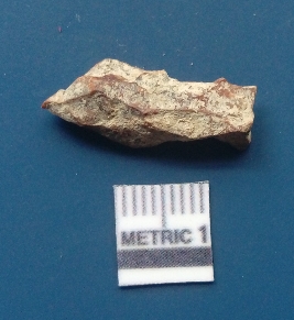 | Description / विवरण | The chert piece is dark in color, with a prominent bulb of percussion and sharp flaked edges. The piece is a part of lithic debitage or raw material for lithic knapping. The piece shows clear ripple marks and bulb of percussion. |