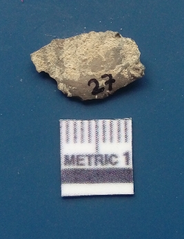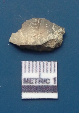 | Description / विवरण | The chert piece is dark in color, with a prominent bulb of percussion and sharp flaked edges. The piece is a part of lithic debitage or raw material for lithic knapping. The piece shows clear ripple marks and bulb of percussion. |