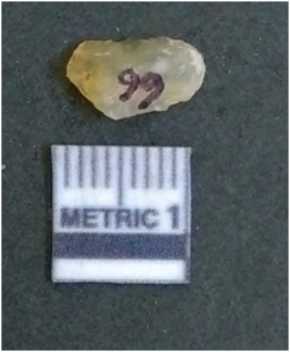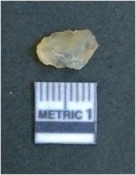 | Description / विवरण | It is chalcedony flake, translucent in appearance. The piece shows sharp pointed ends and flake scars on the surface as a result of flaking. The piece shows a bulb of percussion. |