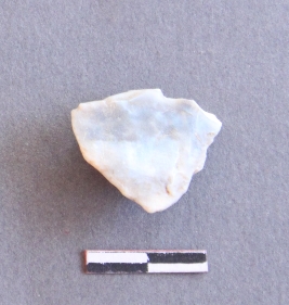 | Description / विवरण | The lithic debitage have sharp edges and pointed ends. It is milky quartz stone fragment is roughly triangular. |