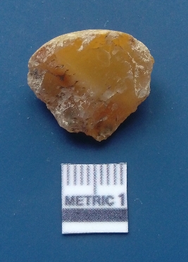 | Description / विवरण | It is chalcedony flake, translucent in appearance. The piece shows sharp pointed ends and flake scars on the surface as a result of flaking. The piece shows a bulb of percussion. |