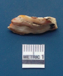 | Description / विवरण | It is chalcedony flake, translucent in appearance. The piece shows sharp pointed ends and flake scars on the surface as a result of flaking. The piece shows a bulb of percussion. |