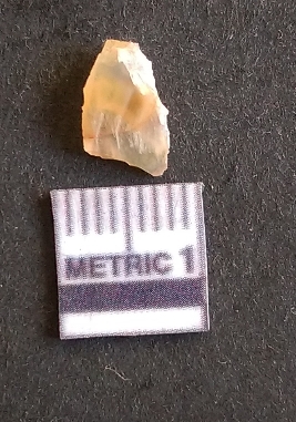 | Description / विवरण | The chalcedony flake is pale yellow in color. Translucent in appurtenance. The piece is shows sharp pointed ends and flake scars on the surface. As a result of flaking. |