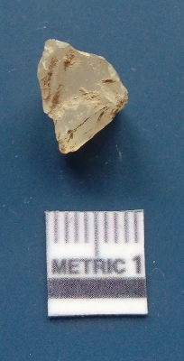 | Description / विवरण | It is chalcedony flake, translucent in appearance. The piece shows sharp pointed ends and flake scars on the surface as a result of flaking. The piece shows a bulb of percussion. |
