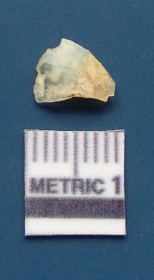 | Description / विवरण | It is chalcedony flake, translucent in appearance. The piece shows sharp pointed ends and flake scars on the surface as a result of flaking. The piece shows a bulb of percussion. |