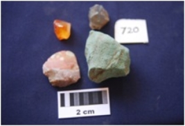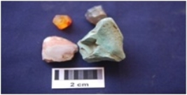 | Description / विवरण | Chalcedony 2 Chert 2. Among them three are flake cores and one utilized flake with flake scars, use-wear marks along the cutting edge. |
