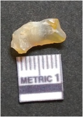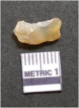 | Description / विवरण | It is chalcedony flake, translucent in appearance. The piece shows sharp pointed ends and flake scars on the surface as a result of flaking. The piece shows a bulb of percussion. |